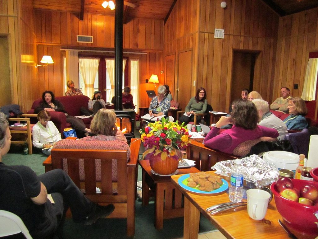 cabin setting, everybody sitting around in a circle taking notes (I’m there