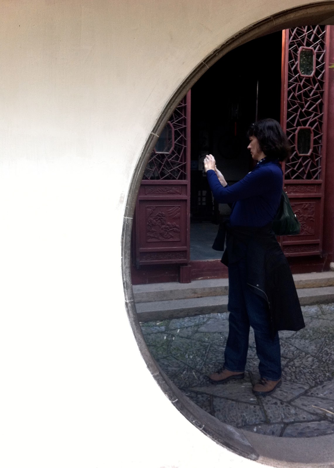 Remember the typical tourist photo where you stand in front of a landmark and have someone else snap a picture to document, “I was here!” Well, how did people do that before cameras? This garden was first built in the 1400s, and Shelly explained that the Chinese wanted to give people the feeling of being in the landscape, of seeing themselves as part of it. The solution? Mirrors! So here, we could look into this ancient, slightly beveled and spotty mirror, and see that yes, we were there!