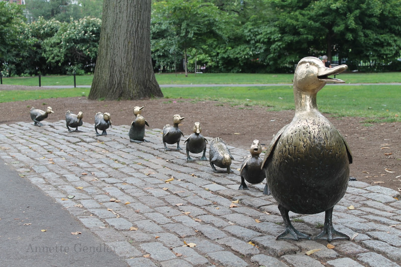 Oh, the power of fiction! Especially children’s fiction! It had my kids and me retracing the steps of Mrs. Mallard and her ducklings from the picture book Make Way for Ducklings as soon as we arrived in Boston last week, even though my kids are teenagers and way beyond the age of picture books. They were not, however, beyond investigating the sites of a beloved story. For me, it was the second time I did that.