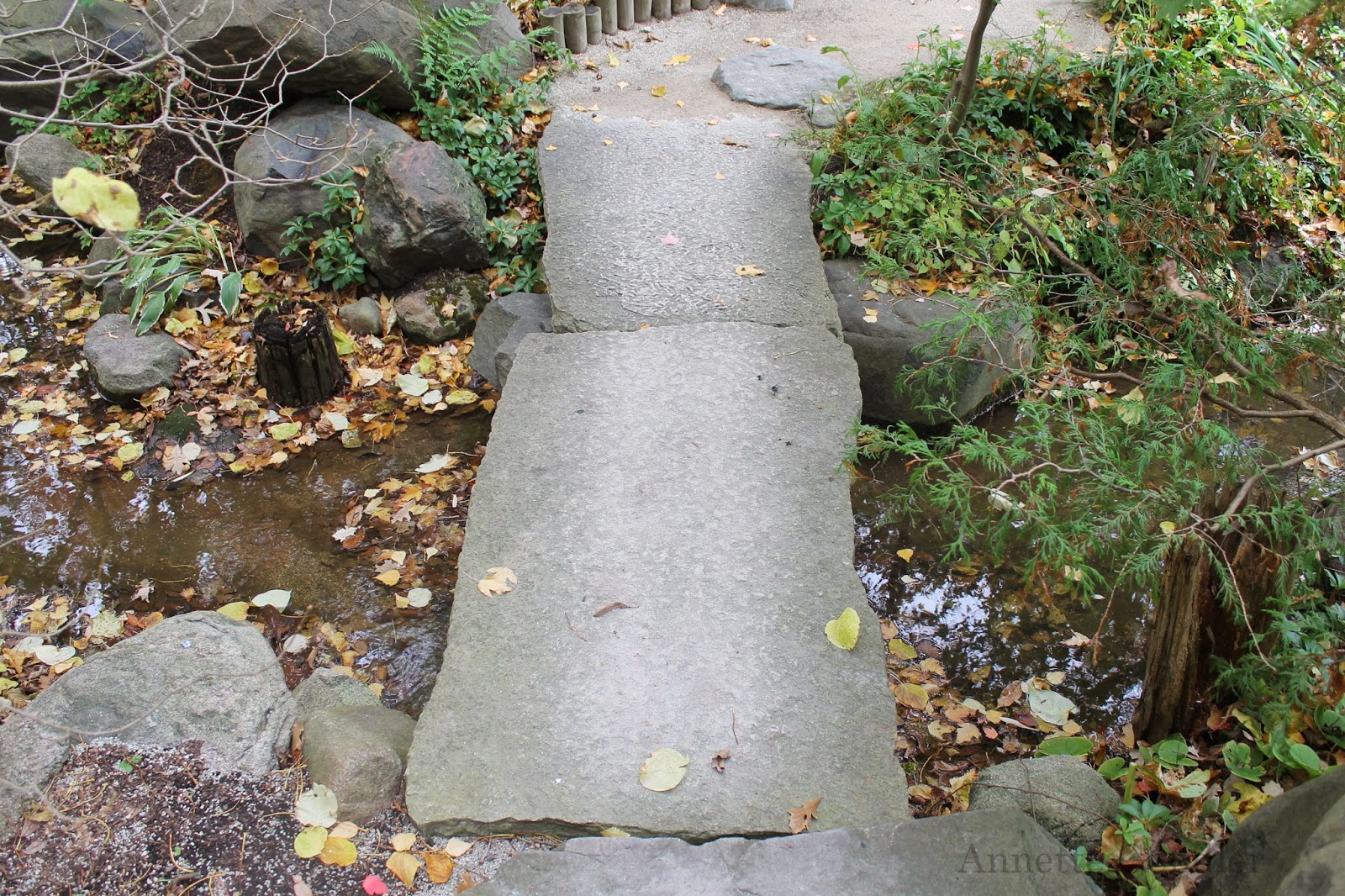 Waterfalls are an important feature of Japanese gardens, and often they have a stepping stone walkway right in front of them. A little farther on from the rail less bridge, I stood on stones carefully arranged in a stream (everything is carefully arranged in a Japanese garden) and took this video to capture that soothing sound of gurgling water.