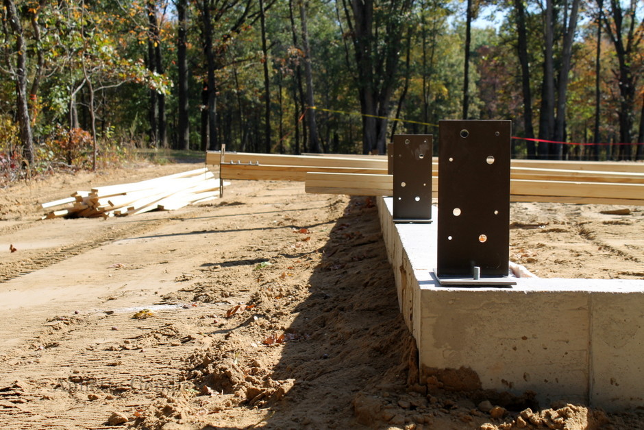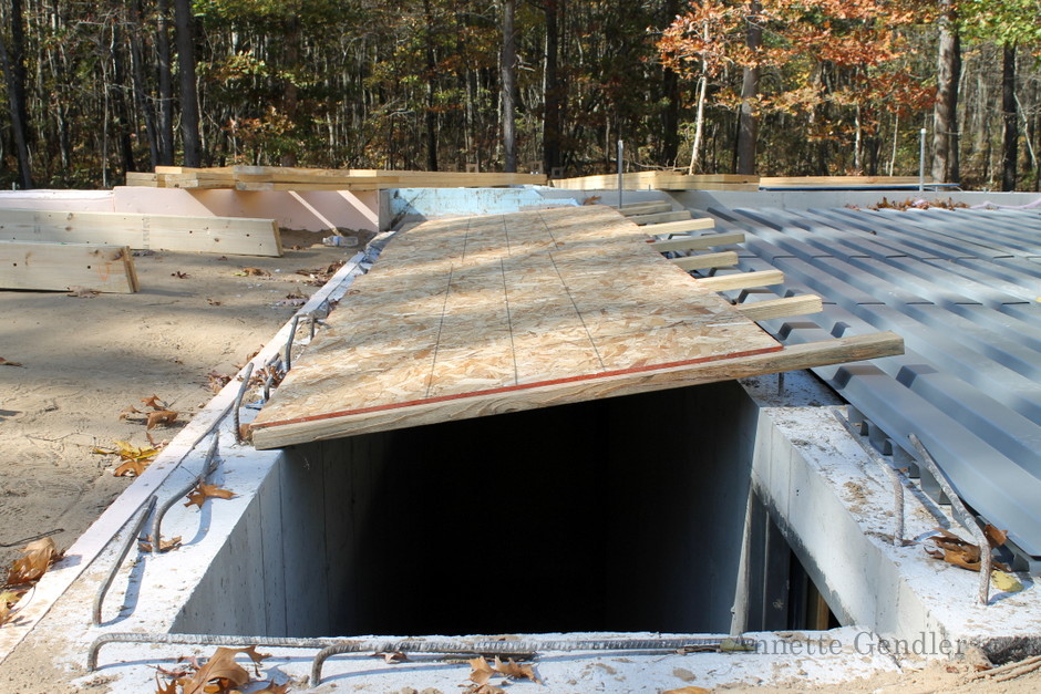 So when I came by a few days after the first two pictures in this sequence were taken, the basement had been poured and its framing plates were already off. Here we’re looking directly at what is going to be a staircase going down to what will be our tornado shelter (if you remember my post “Tornado Trees” from 2012, you know that those dangerous twisters are a reality we have to reckon with).