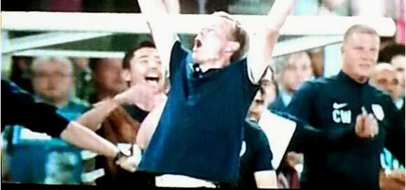 ...when the team you're rooting for in the World Cup 2014 not only shoots a goal, but wins! That picture is joy captured, right? My daughter took it as a snapchat from the TV screen just as U.S. coach Jürgen Klinsman jumps up in joy when the referee blew the whistle ending the game and the U.S. team won 2:1 [...]